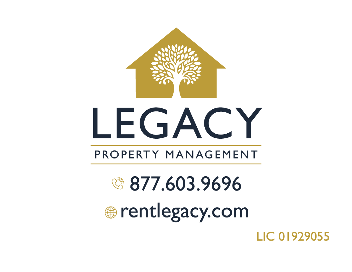 Visit our website for more information. Legacy Property Management is a California licensed real estate broker, and an Equal Housing Opportunity provider.