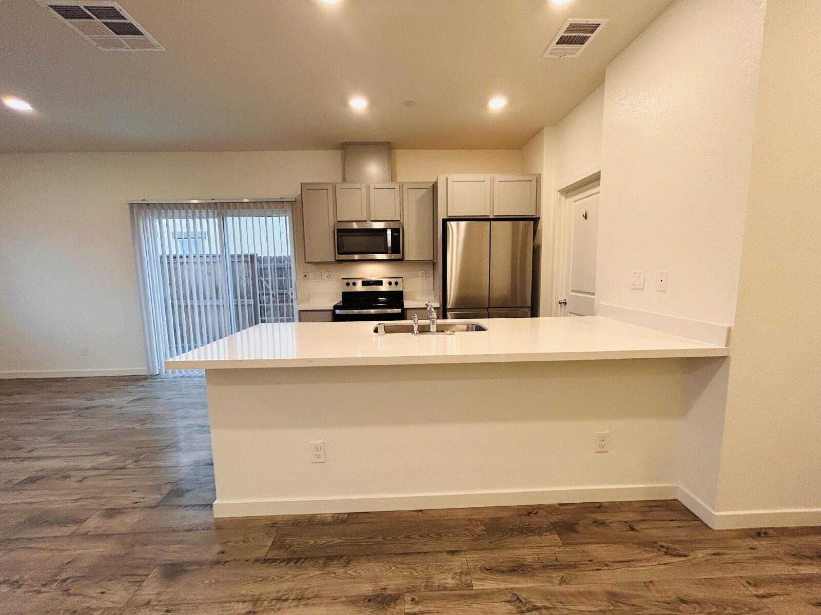 Inside, you’ll find smart-home technology capability, built-in lighting with dimmers in every room, and abundant natural light throughout. The bedrooms upstairs are comfortably carpeted, living space downstairs with hard floors, and the home includes large storage closets for plenty of organization space. The modern kitchen comes equipped with updated appliances and flows easily into the bright living and dining areas. Enjoy added comfort with window blinds already installed and a private patio perfect for relaxing outdoors.