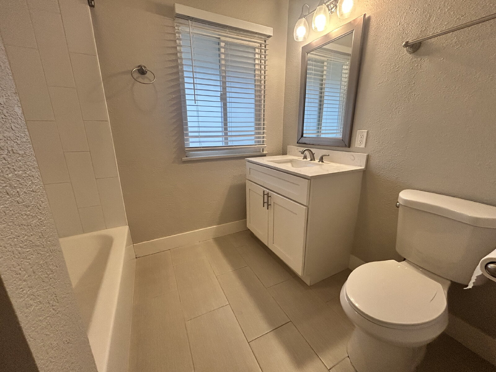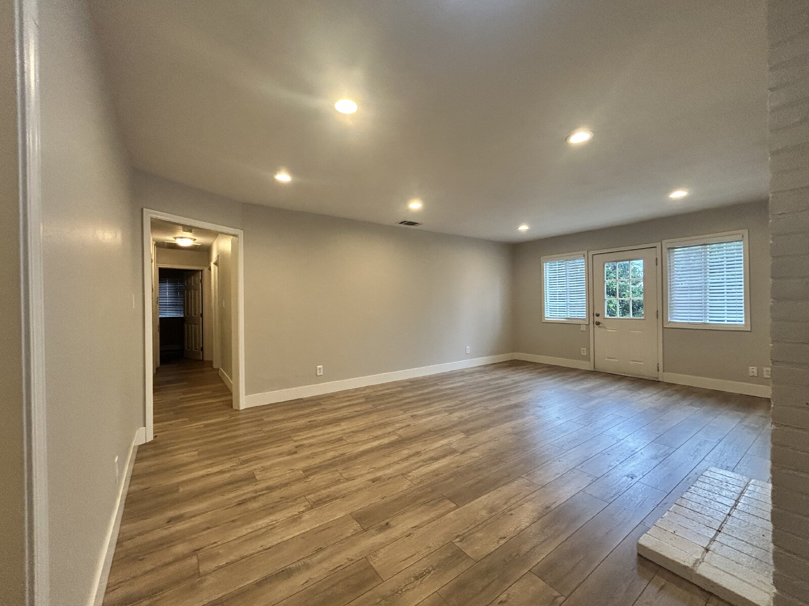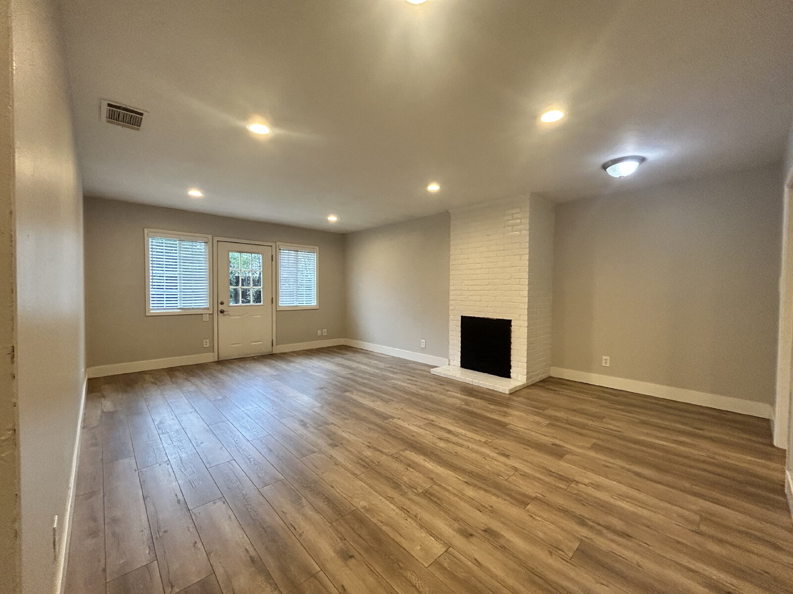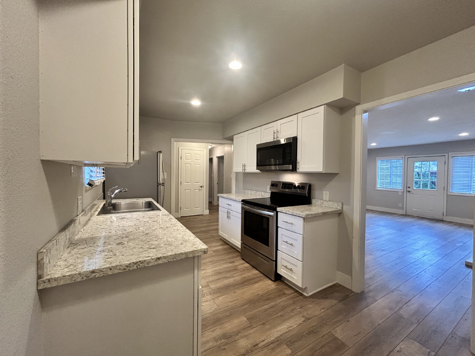 Step inside to luxury vinyl plank flooring throughout and enjoy the bright, modern feel created by LED recessed lighting in every room. The updated kitchen features sleek quartz countertops, stainless steel appliances, and plenty of cabinet space—perfect for everyday living and entertaining. The open living room includes a decorative fireplace and provides direct access to a spacious backyard, ideal for relaxing or hosting gatherings. The bathroom offers a convenient tub and shower combination.