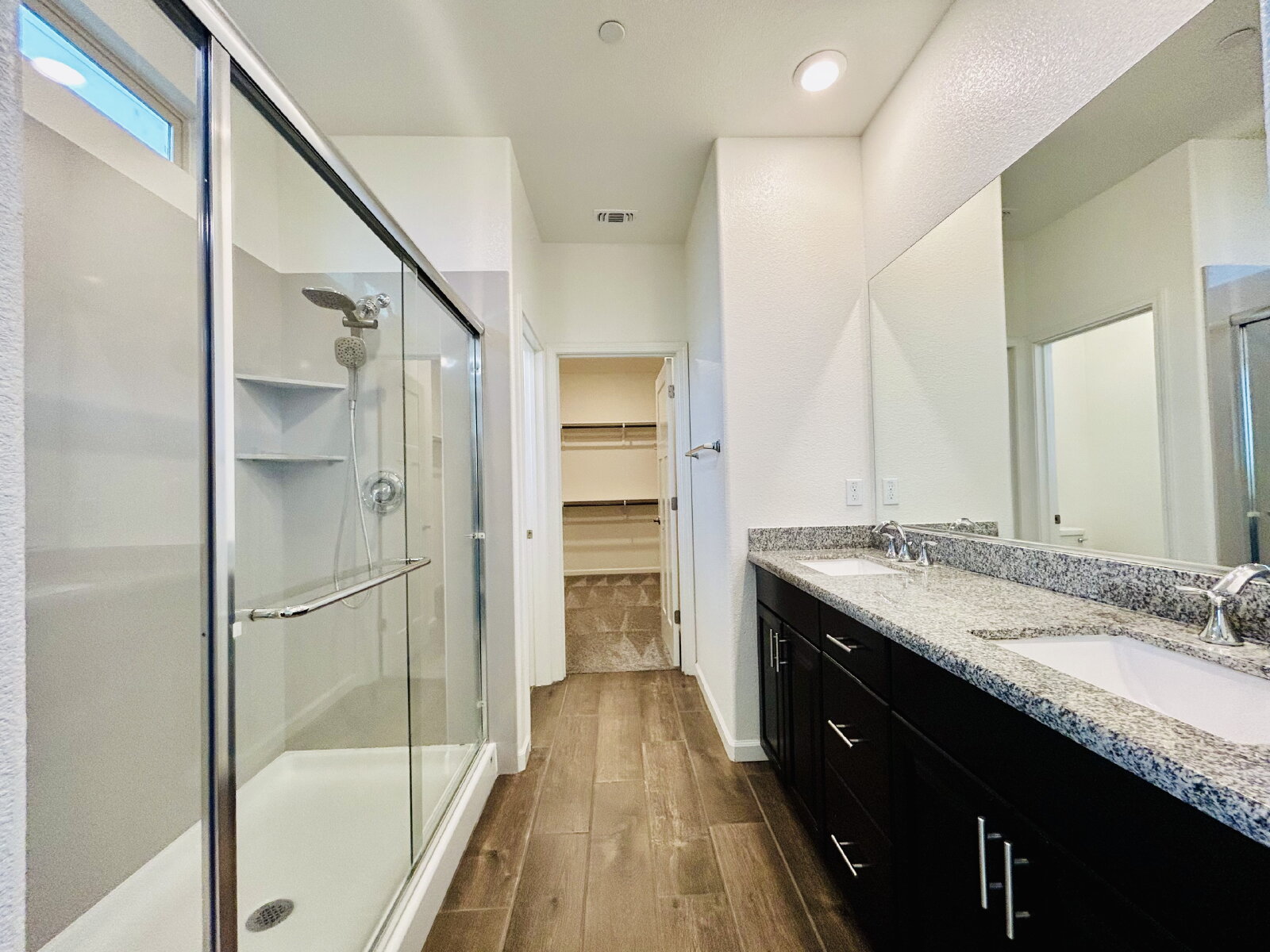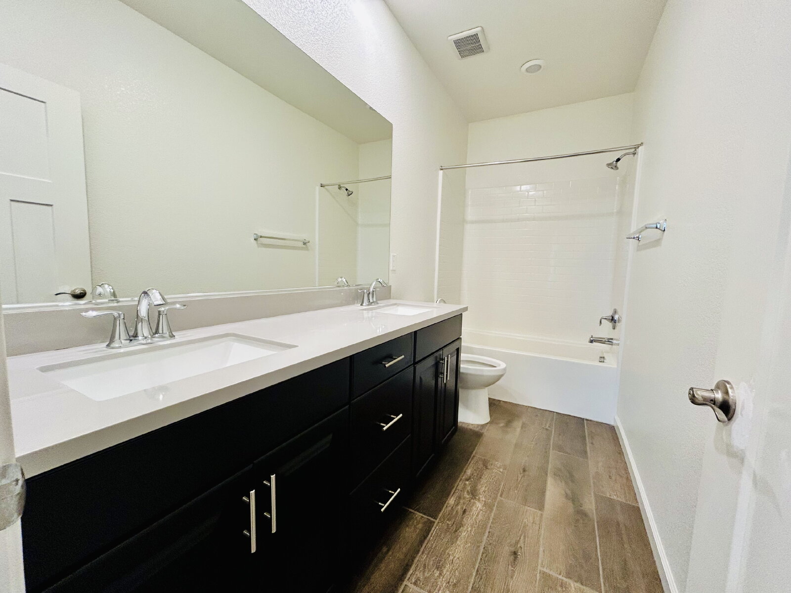 Upstairs, you’ll find an extra living room/loft area, ideal for a home office, media room, or play space. The primary suite offers a true retreat with a spa-like attached bathroom, featuring dual sinks and a relaxing, modern design. Two additional bedrooms share a well-appointed bathroom, and the laundry room is conveniently located upstairs near all bedrooms.