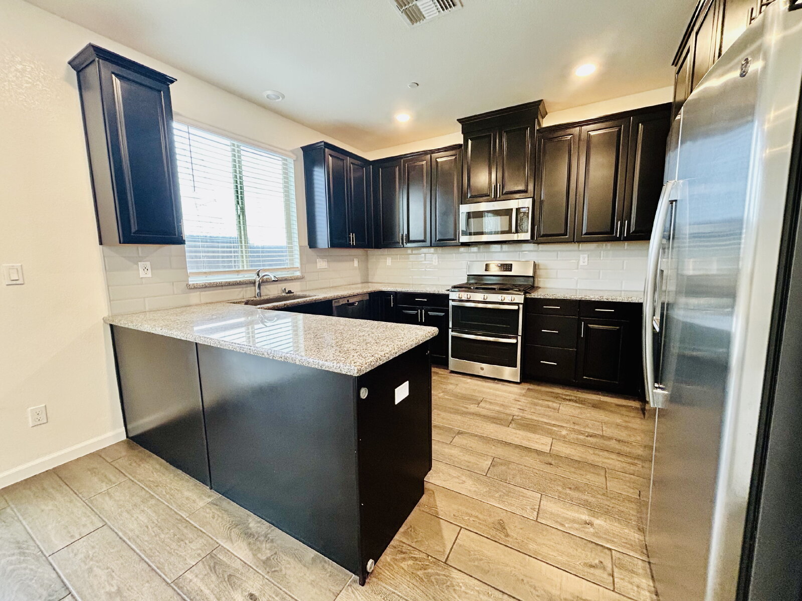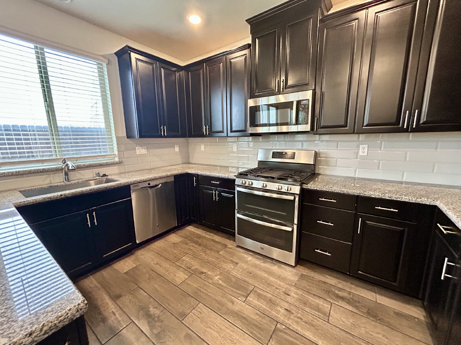 This thoughtfully designed home features a spacious, modern kitchen equipped with contemporary appliances, ample cabinetry, and generous counter space—perfect for cooking and entertaining. The open main living area flows effortlessly, creating a bright and inviting atmosphere.